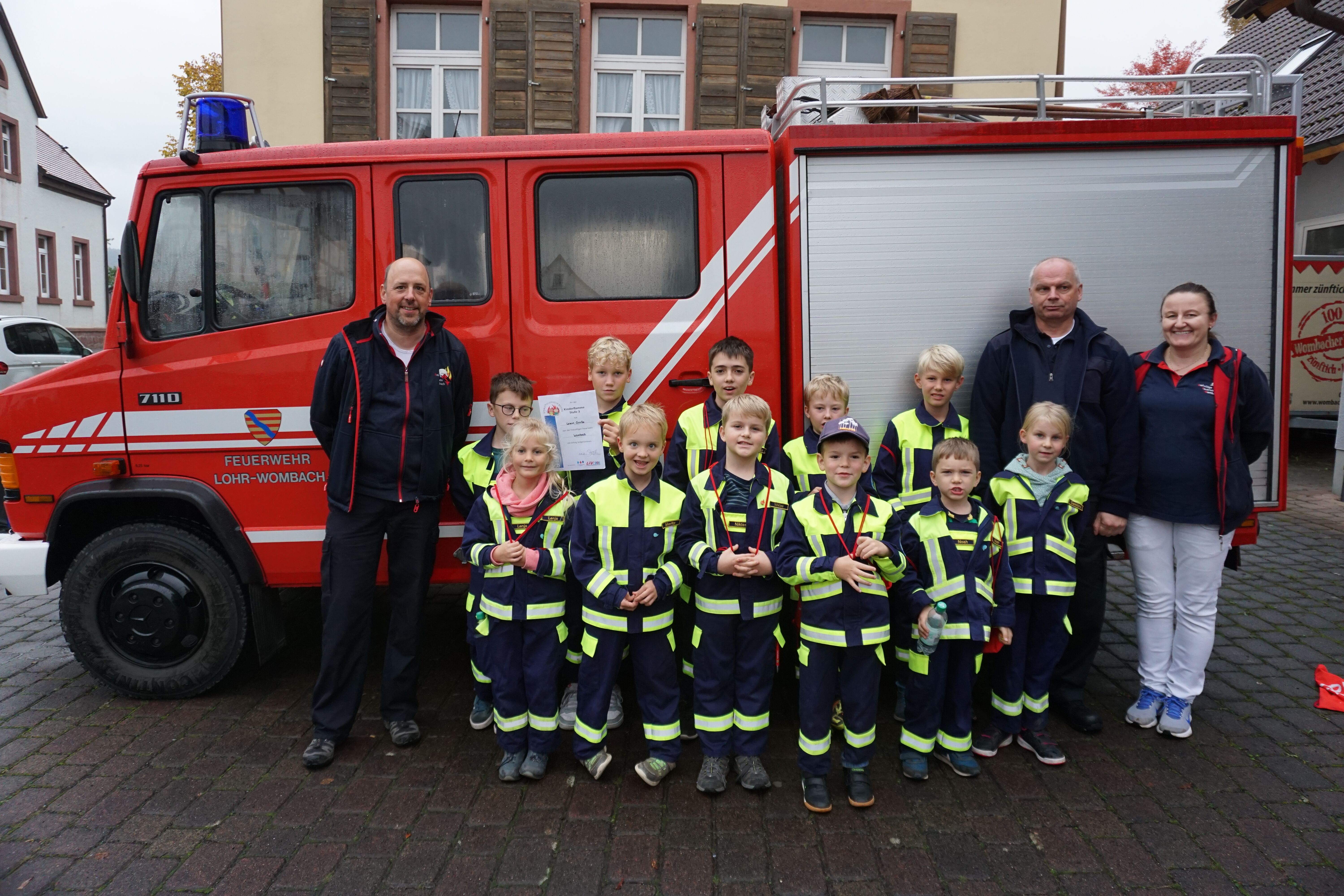 Gemeinsam mit den Kinderfeuerwehren aus Lohr, Pflochsbach, Steinbach, Sackenbach und Ruppertshütten legten elf “Löschknirpse” der Feuerwehr Wombach am vergangenen Freitag die Prüfung zur Kinderflamme ab.